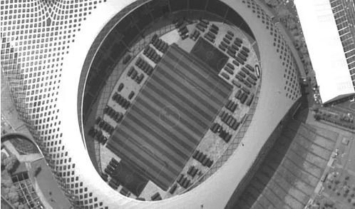 Bức ảnh được chụp bởi chương trình WorldView của Maxar cho thấy ít nhất 500 phương tiện đỗ tại sân vận động bóng đá ở Trung tâm thể thao Vịnh Thâm Quyến.