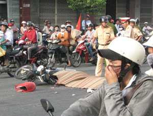 Khi qua đoạn đường trước khách sạn Phương Long (số 299 Điện Biên Phủ), bà Chốt đã ngã ra đường do va chạm với một chiếc xe máy chạy cùng chiều. Chiếc xe bơm bê tông tự hành cán quan người nạn nhân và kéo lê hơn 10m mới chịu dừng lại