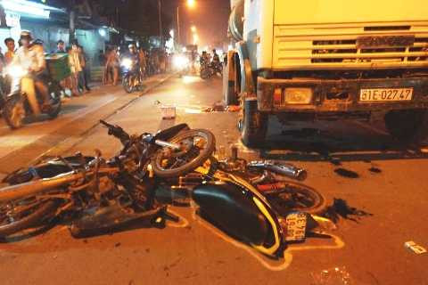 (VTC News) - Một chiếc xe bồn mất lái khi lưu thông với tốc độ cao gây tai nạn cho 2 xe máy khiến 4 người thương vong.