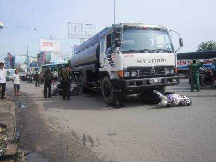 Hàng loạt lương tiện đã tấp ngay vào lề, không may một người phụ nữ khoảng 28 tuổi điều khiển xe tay ga BKS 54P1- 086.18 chưa kịp tháo chạy đã bị xe bồn tông và kéo rê đi gần 2 mét.