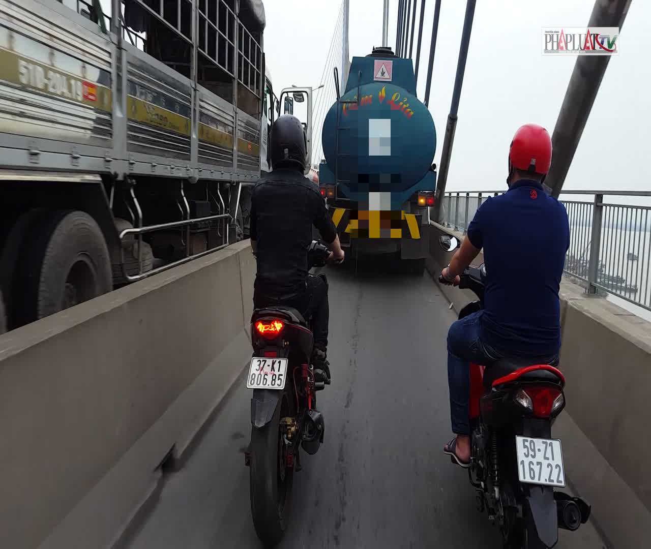 Xe bồn ngang nhiên chiếm đường xe máy trên cầu Phú Mỹ