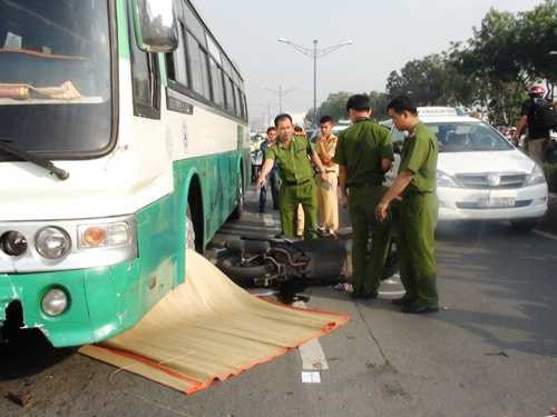Đúng lúc này, chiếc xe buýt BKS 53N-3363 mã hiệu 13, chạy tuyến Củ Chi đi Công viên 23/9 chạy tới tông xe máy hất văng lái xe vào lề đường, còn anh Nguyên bị té ngã sau va chạm và bị xe buýt cán qua.