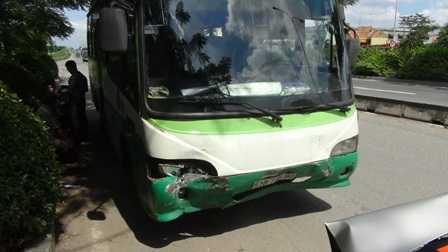 Khi đến cầu vượt Sóng thần, xe buýt thả dốc bất ngờ không làm chủ được tốc độ đâm phải xe con 4 chỗ mang biển kiểm sát 51F.24529 đang chạy phía trước.