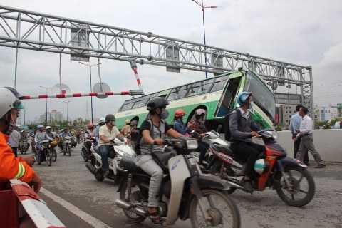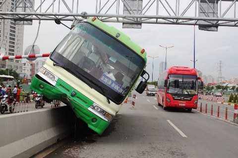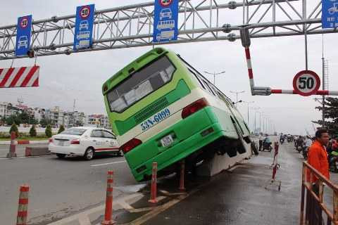 Khi chiếc xe vừa lách được xe du lịch thì gặp lúc phần đường hai bánh di chuyển qua cầu Sài Gòn bị hạn chế chiều cao, buộc tài xế Cường phải đánh lái quay trở lại làn đường ô tô nên xảy ra sự cố va chạm làm hư hỏng khung giới hạn, chiếc xe bị cưỡi cheo leo trên dải phân cách.