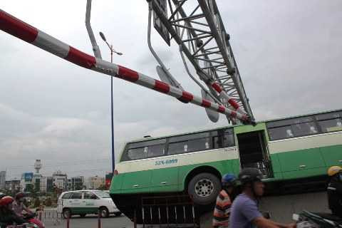 Khung giới hạn chiều cao trong làn đường xe gắn máy bị xe buýt làm hư hỏng