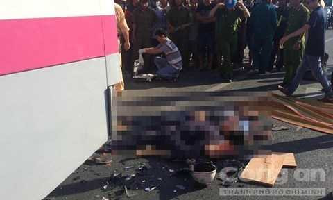 Chiếc xe buýt bất ngờ tấp vào lề bắt khách khiến 2 thanh niên đi xe máy cùng chiều tông thẳng vào đuôi xe buýt, tử vong.
