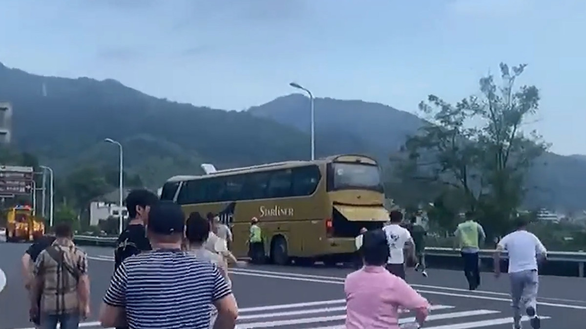 Hành khách và nhân viên quản lý đường cao tốc đuổi theo và ngăn chặn kịp thời chiếc xe buýt bị hỏng phanh tại tỉnh Chiết Giang, Trung Quốc.