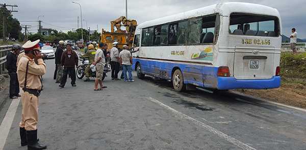 Người dân địa phương cho hay, vào thời điểm trên, xe ô tô khách mang BKS 43B-024.56 do tài xế Nguyễn Hữu Hai (trú phường An Khê, Q.Thanh Khê, Đà Nẵng) điều khiển, chở theo 29 công nhân nhà máy cao su Đà Nẵng đi làm việc.
