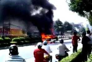 (VTC News) - 9h sáng ngày 18/8, trên đường Trường Chinh, đoạn qua Hưng Thuận 2, TP.HCM, chiếc xe ô tô loại 16 chỗ chở 12 bệnh nhân và người nhà bệnh nhân đang trên đường từ bệnh viện về nhà đã bốc cháy dữ dội.