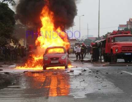 Chiếc xe bị thiêu rụi hoàn toàn cùng các hành lý và tài liệu trong xe. Những người trong xe may mắn nhảy ra ngoài, không có thiệt hại về người.