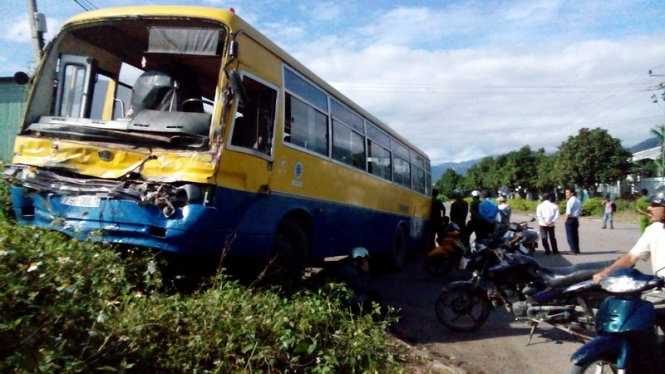 Đến trưa cùng ngày, lực lượng chức năng huyện Cam Lâm đã hoàn tất việc khám nghiệm hiện trường vụ tông nhau giữa hai xe chở công nhân trong khu công nghiệp Suối Dầu.