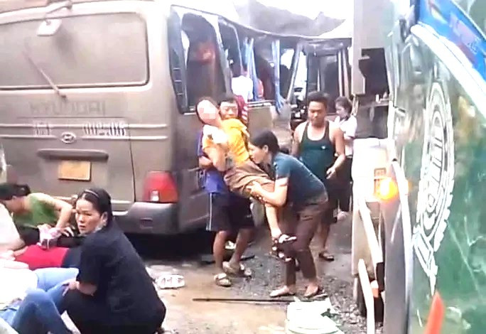 Cú tông mạnh khiến xe khách bị hỏng ở thân xe, khoảng 20 công nhân trên xe khách bị thương phải đưa đến Bệnh viện Đa khoa khu vực Tây Bắc Nghệ An cấp cứu.