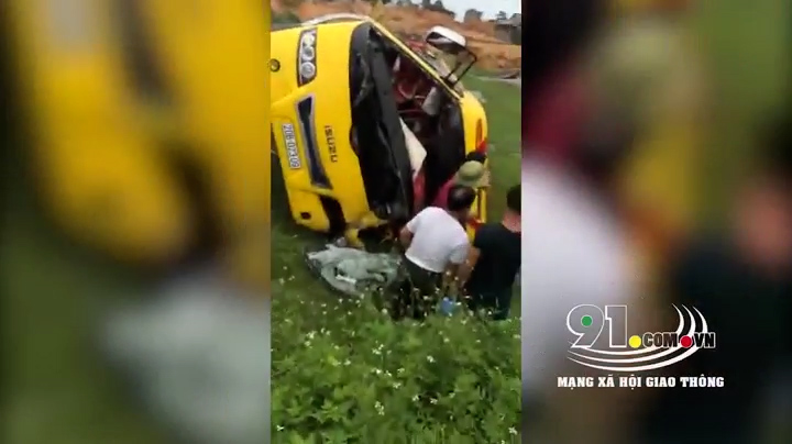Trưa 18/6, xe tải chở đá lưu thông trên đường 313 hướng Yên Lập – Cẩm Khê, Phú Thọ bị nổ lốp lao sang làn đường ngược chiều, tông trực diện xe khách.