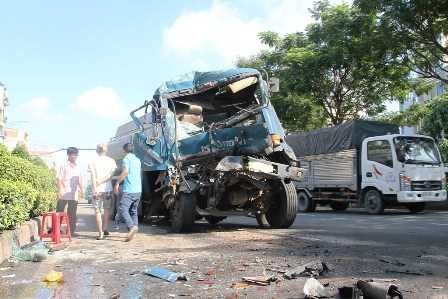 Khi đến khu vực này, để tránh một chiếc xe bus chạy cùng chiều, tài xế xe bồn chở dầu xử lý không kịp nên đã đâm vào đuôi xe container BKS: 57M-3441 kéo theo rơ móc BKS: 51R-10311 (chưa xác định được danh tính tài xế) chạy cùng chiều.
