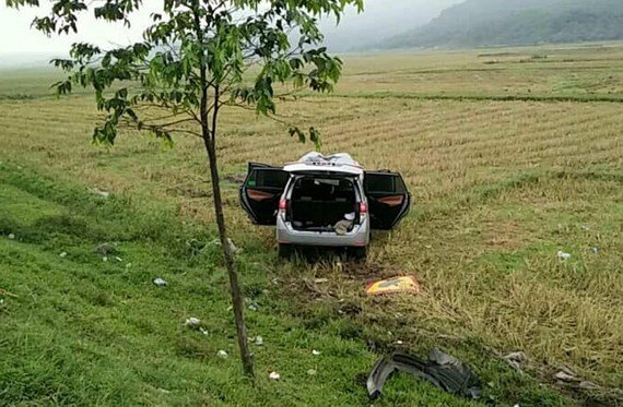 Vào thời điểm trên, xe ô tô con 7 chỗ mang BKS 15A (chưa xác định được danh tính tài xế) chở 5 người chạy trên Quốc lộ 1 theo hướng Nam - Bắc. Khi đi trên đoạn đường tránh thị xã Hồng Lĩnh (Hà Tĩnh), ô tô tông gãy 4 cột mốc rồi lao xuống ruộng.