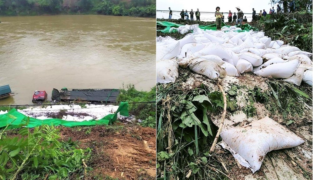 Vụ tai nạn khiến hàng trăm bao gạo trên thùng xe văng khắp nơi, số còn lại bị chìm xuống sông nhưng rất may tài xế không bị nguy hiểm đến tính mạng. Sau đó, người dân lập tức thông báo cho cơ quan chức năng đến xử lý vụ việc.