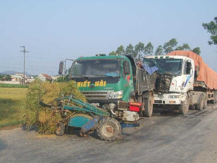 (VTC News) - Lúc 7h15 ngày 15/5/2010 tại Km13 trên QL8A đoạn giáp ranh giữa Đức Long - Đức Bùi (Đức Thọ, Hà Tĩnh) xảy ra vụ tai nạn nghiêm trọng. Rất may 2 tài xế xe tải và 1 tài xế xe công nông chở lúa thoát nạn trong gang tấc.