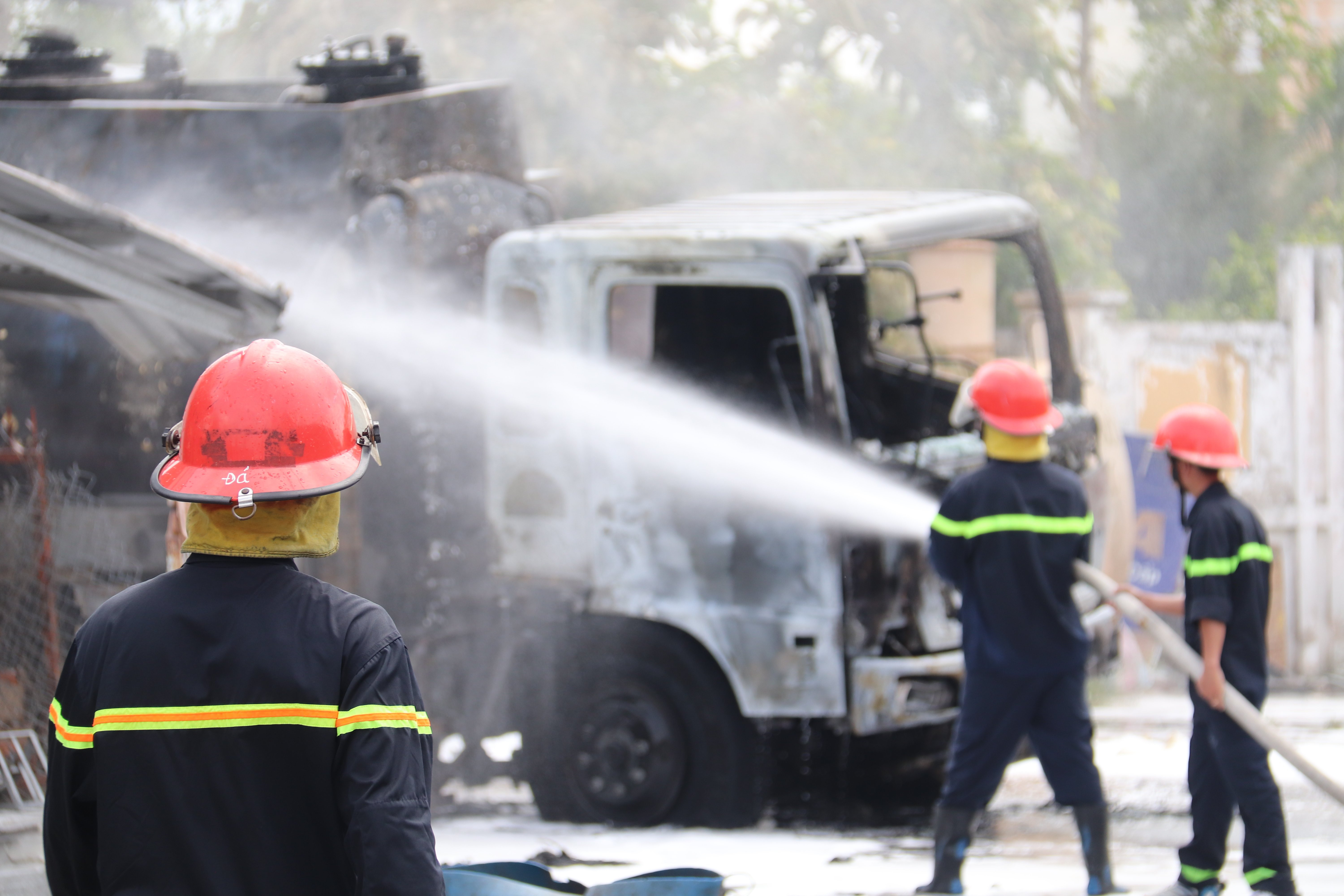 Đến khoảng 12h30 phút, lực lượng chức năng vẫn còn đang phun nước và hóa chất để làm mát chiếc xe. Hiện nguyên nhân vụ cháy đang được điều tra làm rõ.