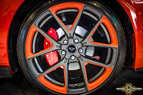 | Sẽ thật thiết sót khi không nhắc tới "dàn chân" của chiếc xe khi nó đã được thay bộ mâm chữ Y "hàng hiệu" Vorsteiner VFF-101 với kích thước 20 inch, với màu xám Graphite nhưng có các chấu sơn kết hợp màu cam trùng màu với thân xe. |