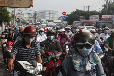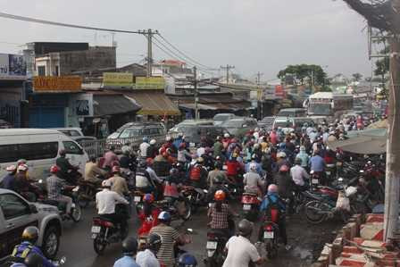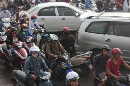 | Hàng ngàn phương tiện di chuyển khó khăn. |