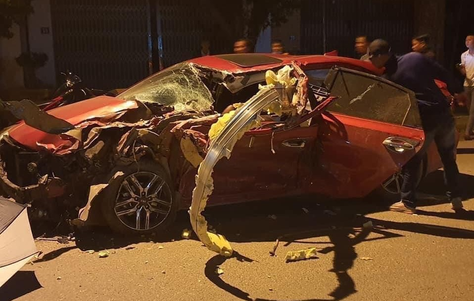 Chiếc ô tô con biến dạng sau vụ tai nạn.