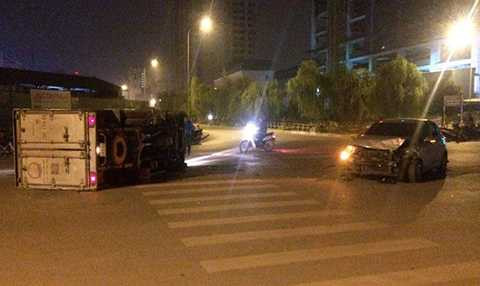 Khoảng 23h30 ngày 21/12 tại khu vực ngã tư Nguyễn Chánh – Mạc Thái Tổ (Hà Nội) đã xảy ra một vụ va chạm giữa xe tải loại 1,25 tấn và xe ôtô 4 chỗ khiến chiếc xe tải bị hất văng, đổ lật ra giữa đường.