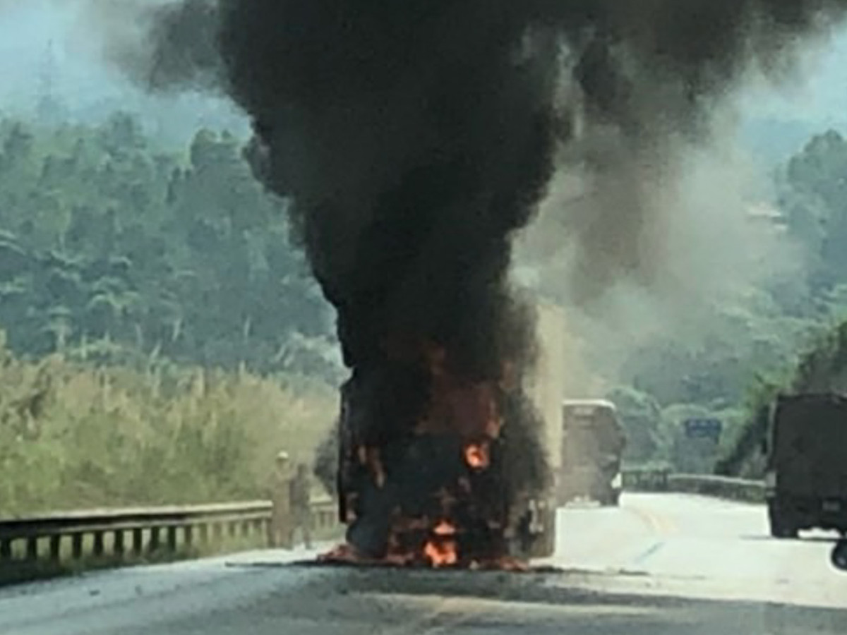 Khi đến Km231+500 cao tốc Nội Bài - Lào Cai, đoạn thuộc địa phận xã Xuân Giao (huyện Bảo Thắng, Lào Cai), phần đầu phương tiện bốc khói nghi ngút rồi bùng lên thành đám cháy lớn.