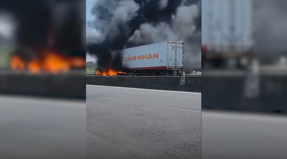Xe container bốc cháy ngùn ngụt trên quốc lộ 1
