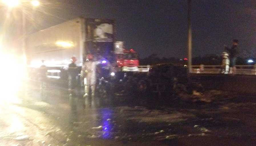 Vụ cháy xảy ra vào lúc 19h15 trên cầu Thanh Trì, Hà Nội. Các nhân chứng cho biết vào khoảng thời gian trên, chiếc container mang BKS-51R 015.28 di chuyển hướng Hà Nội - Bắc Ninh khi đến giữa cầu thì bốc cháy dữ dội ở phần đầu xe.