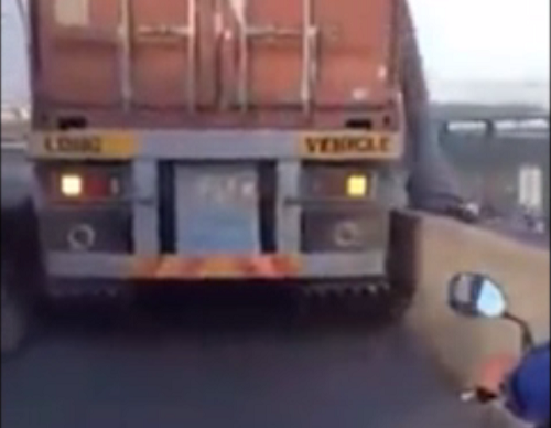 Xe container thản nhiên đi trên làn đường dành cho xe 2 bánh
