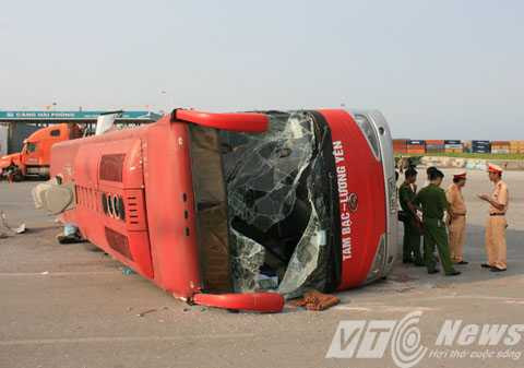Theo thông tin ban đầu, khoảng 15h ngày 9/6, tại điểm sang đường phía trước cổng cảng 6 làn (Cảng Tân Cảng) trên đường 356 (Hải Phòng), xe khách hãng Hoàng Long BKS 16M-7068 đang lưu thông hướng từ phà Đình Vũ về Hải Phòng, va chạm với xe container đầu kéo BKS 43C-01629 khi chiếc xe này đang sang đường.