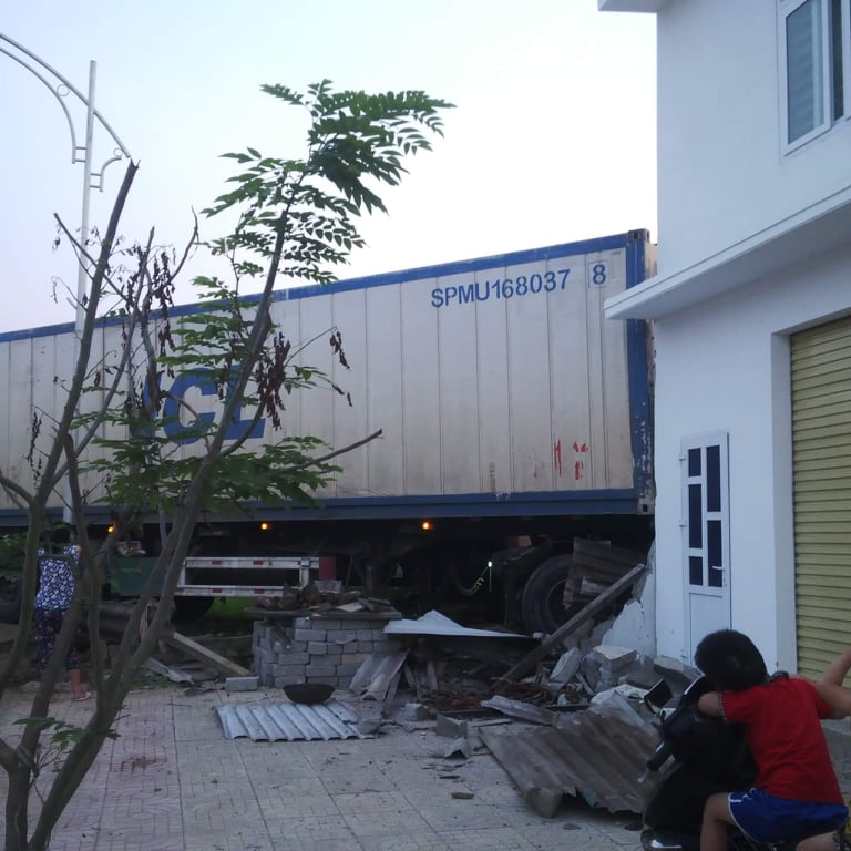 Hiện trường xe container đâm sập nhà bếp của gia đình ông Tuệ