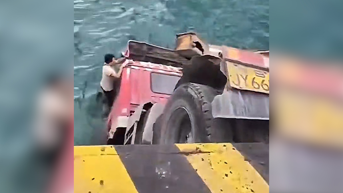 Tài xế may mắn thoát chết khi chiếc xe container rơi xuống biển tại Thâm Quyến, Trung Quốc.