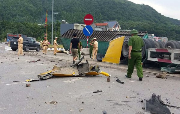 Sau khi lật, phần đầu xe bị văng một đoạn, húc đổ hàng rào của một công ty rồi mới dừng lại. Tại hiện trường, dải phân cách bị húc văng hơn 15 m, toàn bộ cabin xe container nát bét, mảnh vỡ văng tứ tung. Container cùng rơ-moóc chắn ngang một chiều trên quốc lộ khiến đoạn đường này ùn tắc gần 1 tiếng đồng hồ.