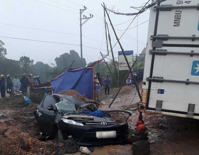 Do chiếc xe container khá nặng nên phải huy động máy xúc đào đất mới đưa được xe con ra. Đến khoảng 10h, vụ tai nạn đã cơ bản được giải quyết, giao thông tại khu vực đã lưu thông bình thường trở lại.