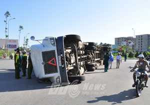 Vào khoảng 15h10 chiều 24/1, lái xe Trần Võ Hùng (SN 1972, trú quận Hải Châu, TP Đà Nẵng) điều khiển xe container mang BKS 43S-9075 kéo theo rơ-mooc mang BKS 43R-1050 chở hàng chục tấn gỗ lưu thông trên đường Lê Đại Hành hướng về cảng Tiên Sa. Khi đến vòng xuyến ngã tư Nguyễn Hữu Thọ - Lê Đại Hành (phường Khuê Trung, quận Cẩm Lệ, Đà Nẵng) đã ôm cua khiến xe và rơmooc bất ngờ lật ngửa.
