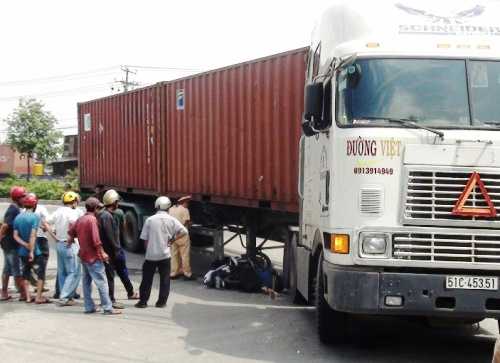 (VTC News) - Xe container bất ngờ rẽ ngang đường khiến một nam thanh niên điều khiển xe máy chết thảm.
