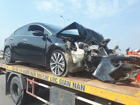 Tại hiện trường kính xe vỡ vụn, đầu xe biến dạng, xê hộp bung túi khí và có nhiều người bị thương nhẹ.