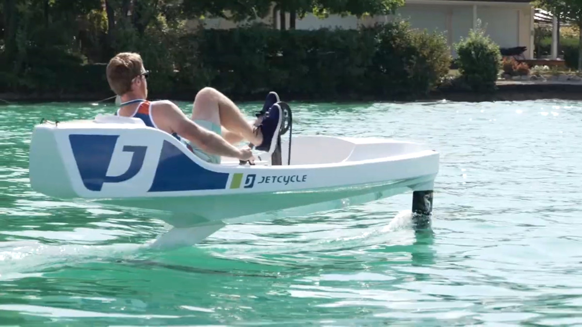 Công ty Jetcycle (Pháp) giới thiệu mẫu xe đạp nước cánh ngầm thứ 2 di chuyển trên mặt nước bằng sức người đạt tốc độ 19 km/h.