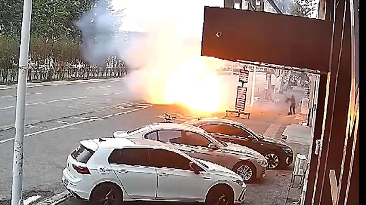 Nam thanh niên may mắn thoát chết sau khi chiếc xe đạp điện liên tục phát nổ tại Thiên Tân, Trung Quốc.