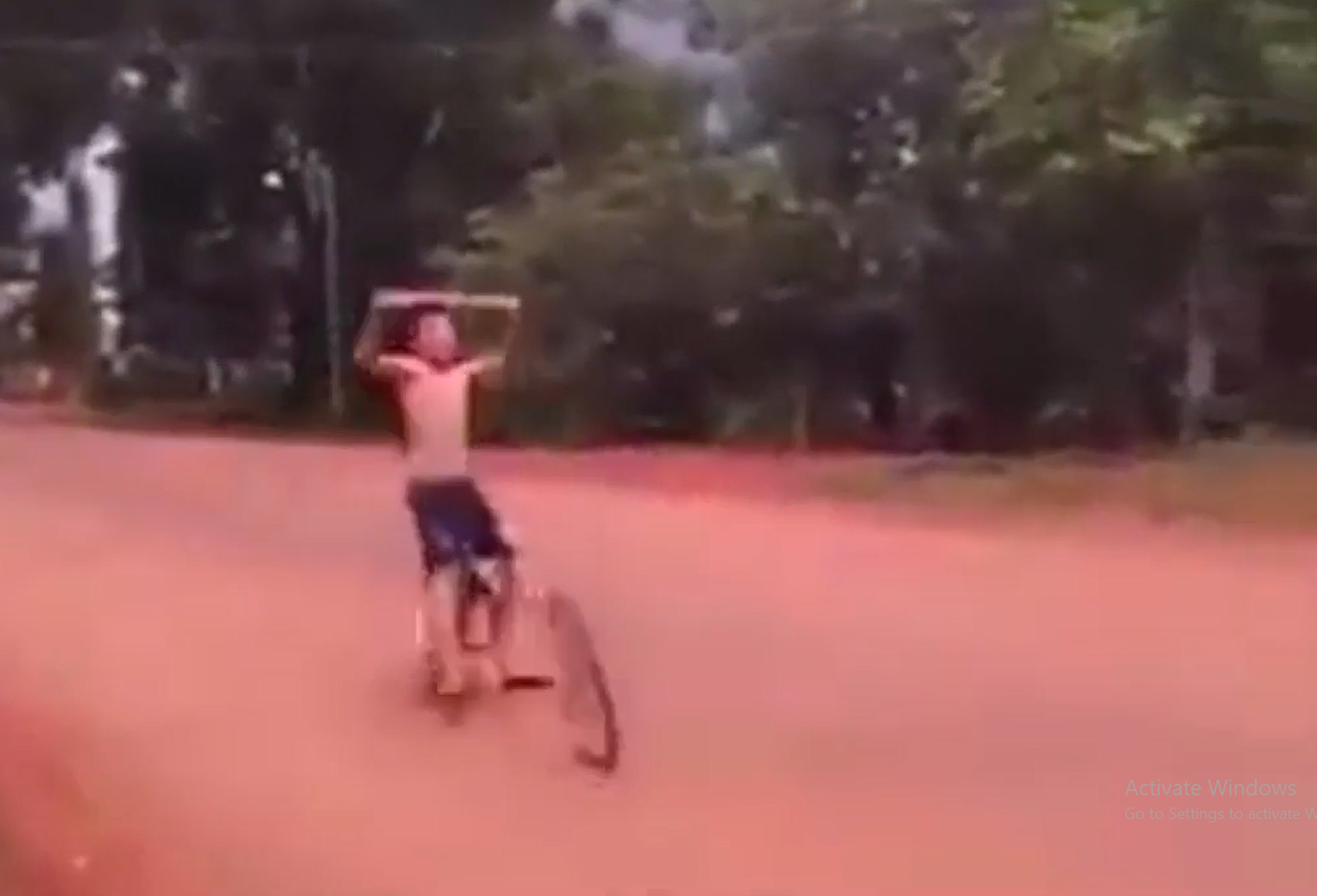 Xe đạp rụng bánh khi đang chạy khiến cậu bé ngơ ngác