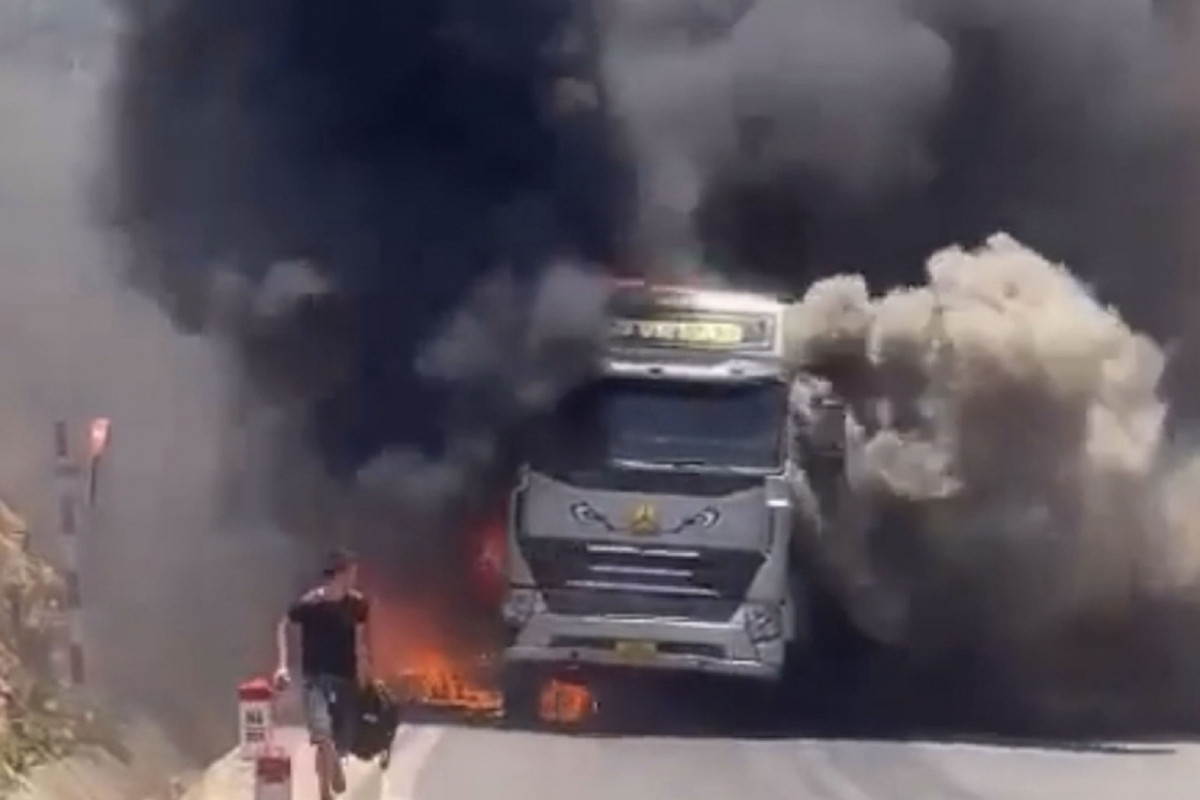 Thông tin ban đầu, chiếc xe mang biển kiểm soát 26C-08722 kéo theo rơ moóc BKS 26R-00035 đang lưu thông theo hướng Hà Nội - Sơn La, đến địa điểm trên thì bất ngờ bốc cháy. Do nắng nóng gay gắt, ngọn lửa lan rộng, phần đầu xe bị thiêu rụi hoàn toàn.
