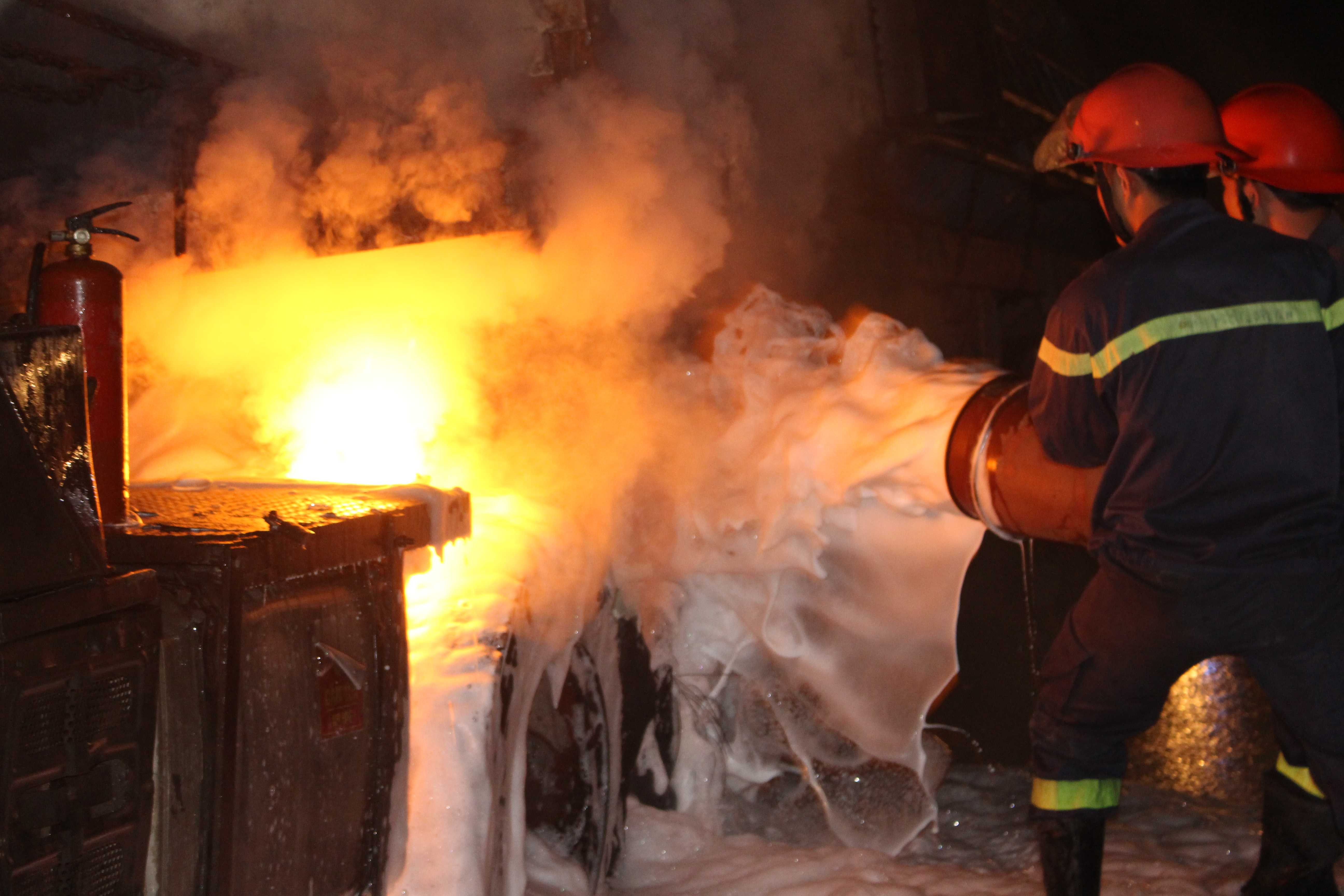 | Ngọn lửa bốc cháy sát với thùng chứa nhiên liệu |