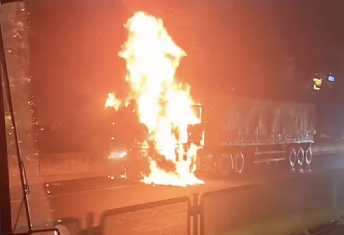 Xe đầu kéo cháy ngùn ngụt phần cabin