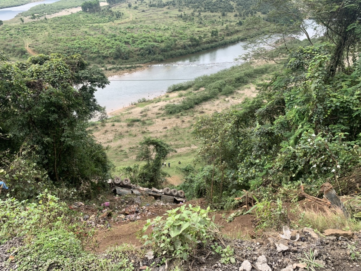 Xe tải rơi xuống vực sâu khoảng 70m. (Ảnh: T.T)