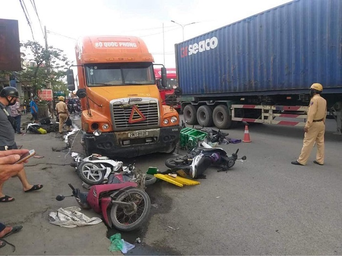 Thông tin ban đầu, gần 15h ngày 28/9, một xe đầu kéo đi vào làn đường của xe máy hướng từ cảng Đình Vũ về cầu vượt Đình Vũ, đến khu vực trên thì đâm vào 6 xe máy đang đi đường.