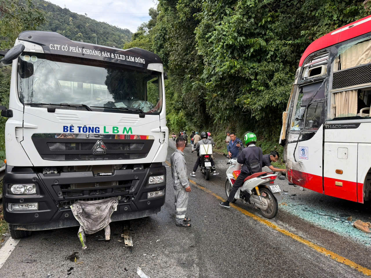 Sau đó, xe đầu kéo tiếp tục lao về phía trước và xảy ra va chạm với xe bồn chở bê tông của Công ty Khoáng sản - Vật liệu xây dựng Lâm Đồng và một xe máy đang lên đèo Bảo Lộc. Lúc này, trên xe máy đang có 2 người.