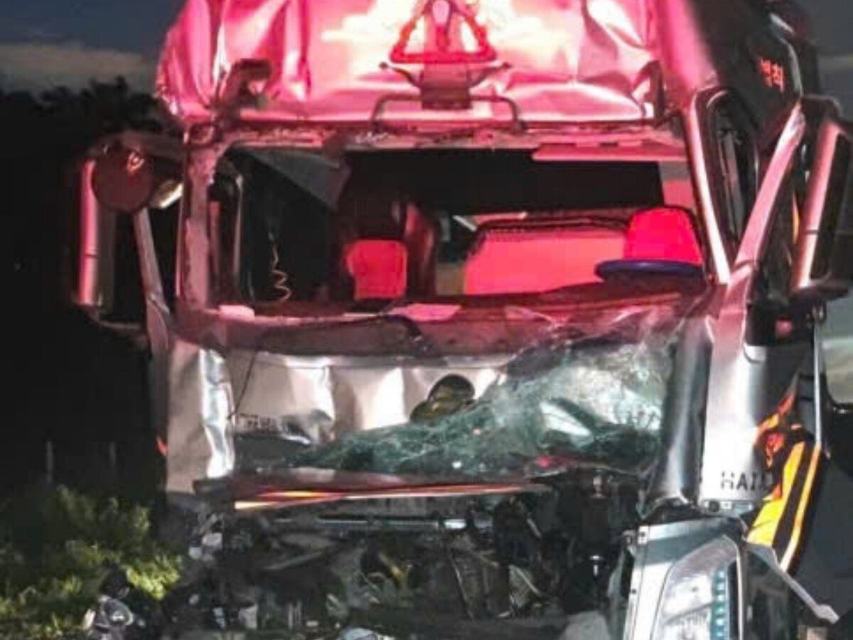 Phần đầu xe đầu kéo bị biến dạng hoàn toàn sau vụ tai nạn. Ảnh: Người dân cung cấp