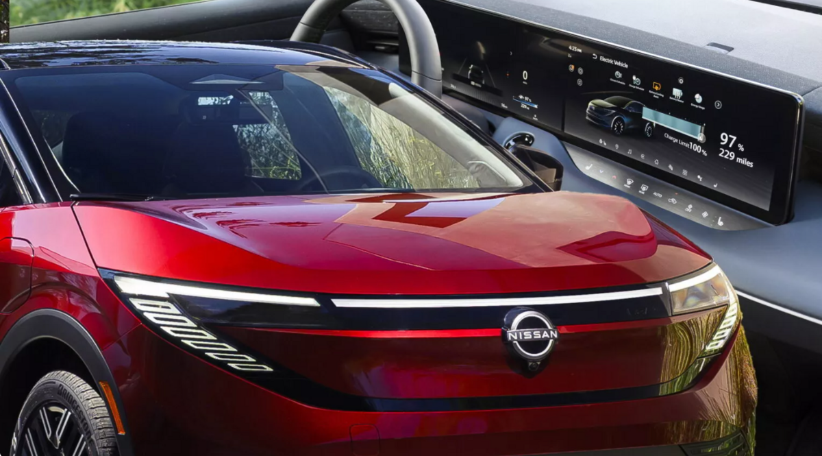 Nội thất của LEAF 2026, với hai màn hình hiển thị riêng biệt cho lái xe và giải trí. (Nguồn: Carscoop)