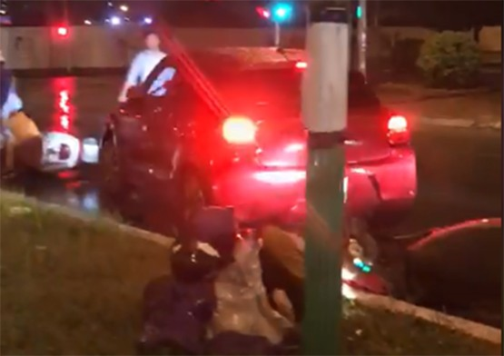 Cụ thể, chiếc "xe điên" này đâm vào 1 ô tô 5 chỗ cùng nhiều người đi xe máy khi dừng đèn đỏ trong đêm. Không dừng lại ở đó, chiếc xe này tiếp tục lùi đâm vào nhiều người đi xe máy trong đó có phụ nữ và em nhỏ. Khi người dân có yêu cầu tài xế ô tô này xuống xe thì chiếc xe này rồ ga vượt đèn đỏ tháo chạy với tốc độ rất cao.